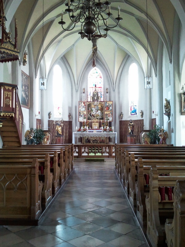 Von aussen schon mal unverschandelt: Innen auch sehr klassisch, man beachte das Kommuniongitter. Der Mesner sagte, dass es schon abgebaut und eingelagert wurde, aber der derzeitige Pfarrer hätte es wieder anbringen lassen.