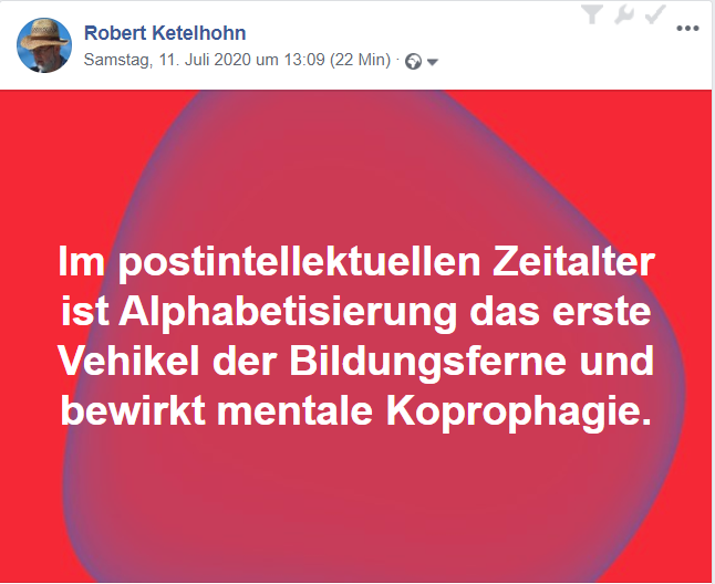 Es gibt aber Ergüsse (wenn sie flockig werden, nennt man sie auch Aphorismen), die mir als besonders einprägsam speziell gefallen, wie:Herr v. Liliencron hat geschrieben: ↑Freitag 20. Dezember 2019, 21:19Nichts. Ich wollte nur meiner Verwunderung darüber Ausdruck geben, was in bestimmten Kreisen, die mir selbst nicht fremd sind, so viele an ihm finden. Schon als ich noch ein Abo von Theologisches bezog, standen seine Ergüsse als Sinnspruch über jedem zweiten Artikel.