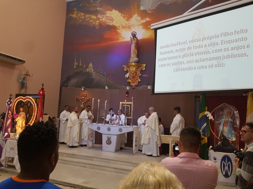 Wobei ich in den letzten Jahren eine Gegenbewegung feststellen konnte, es gibt wieder mehr Kaseln, wenn auch sehr leichte Stoffe (dem Klima geschuldet), aber doch einigermaßen geschmackvoll. Die Bilder sind aufgenommen in der Wallfahrtskirche Nossa Senhora da Penha in Rio de Janeiro.